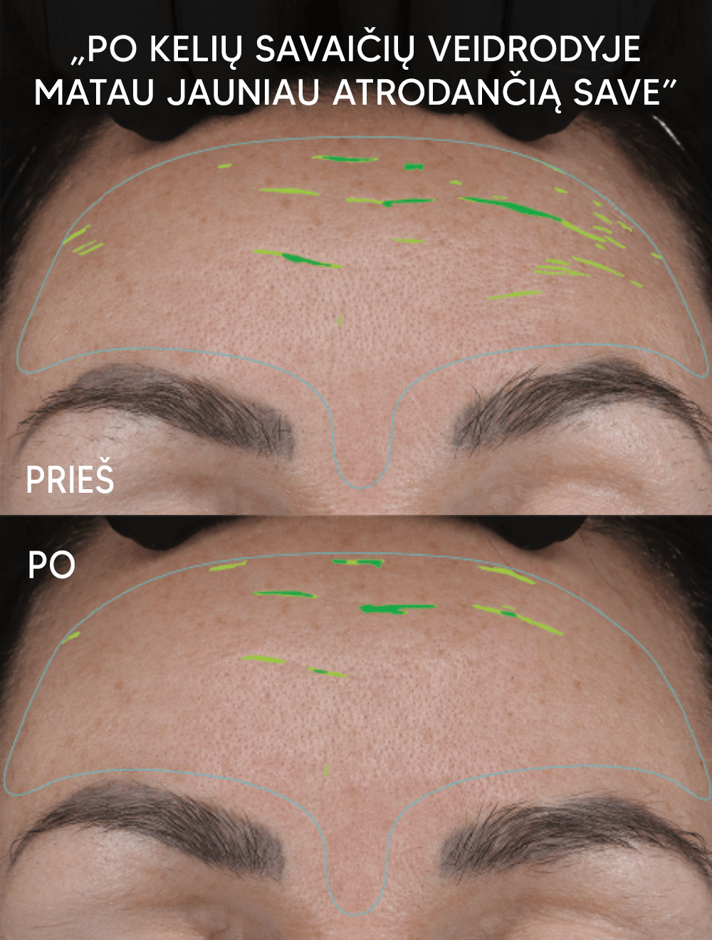 • Po 30 dienų – mažiau matomos raukšlių linijos, daugiau stangrumo.