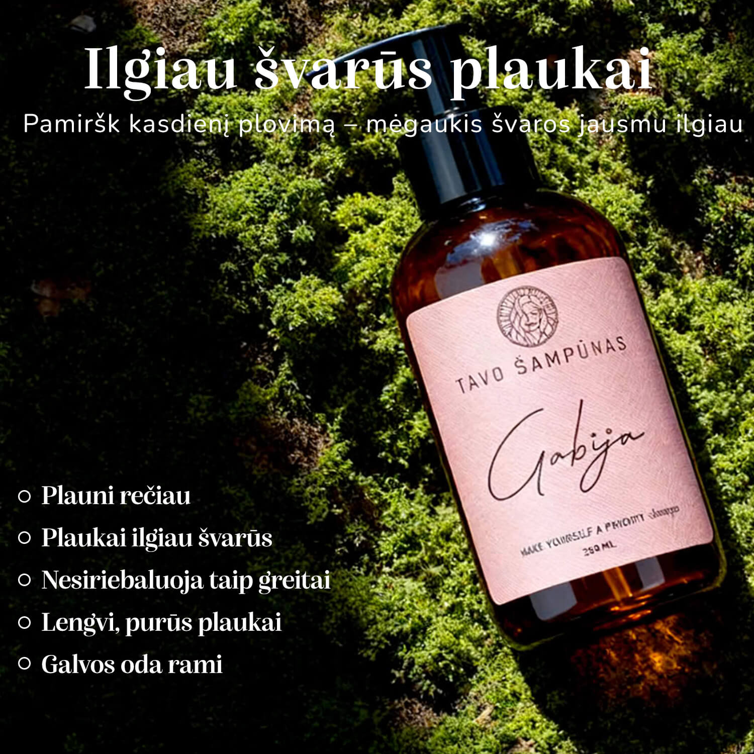 mano šampūnas, pasakysiu maždaug po mėnesio naudojimo. (Turėjau tokių patirčių, kad pradžioje viskas puiku, o paskui pradeda lįsti visokie negeri dalykai). Po 3 plovimų nieko neigiamo pasakyti negaliu, plaukai nesivelia, blizga, nesiriebaluoja, sužavėjo tai, kad iš po nakties plaukai išlieka purūs, išlaiko apimtį ir formą, nėra prisiploję prie galvos. Tad, jeigu ir toliau taip, tai tikrai būsiu Jūsų klientė 🌸. Pakuotė 10 balų, su mielais pagyrimais 😇 ir palinkėjimais 😍. Šaunuoliai, labai džiaugiuosi, kad išdrįsote, tokioje konkurencingoje srityje pristatyti lietuvišką produktą. Jau atrodo tiek visokių šampūnų firmų, kas dar galėtų nustebinti, bet tikrai nustebinote savo nuoširdumu, išradingumu, užsakymo ir pristatymo kokybe. Nuoširdus ačiū visai Jūsų komandai. 💞
