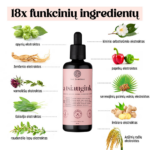 Šie ekstraktai sinergiškai skatina plaukų augimą ir mažina slinkimą, optimizuodami galvos odos būklę ir mikrocirkuliaciją.